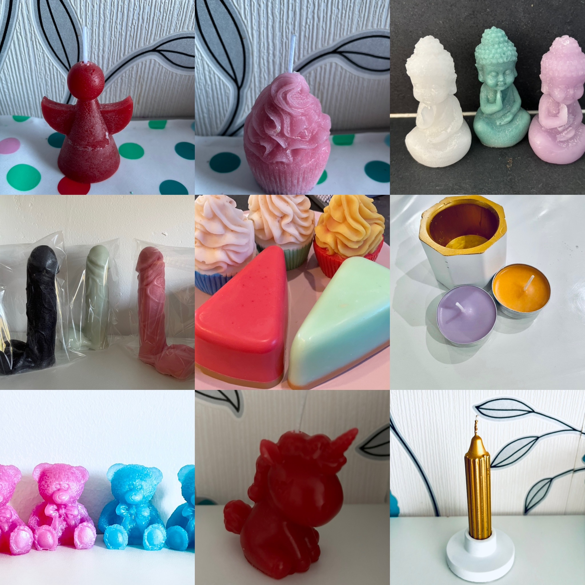 Leuke kaarsen in diverse vormen, voor elk thema is er wel iets, ook voor de stoute thema’s.